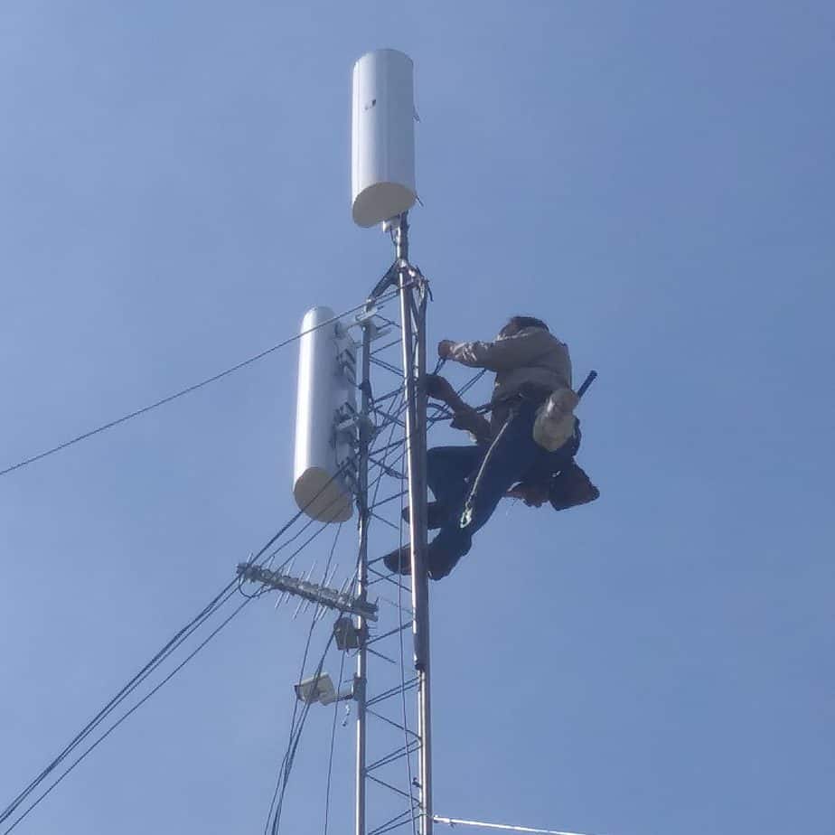 Finally, we mounted several antennas and radios at the top of the tower, to provide coverage to the east and north.