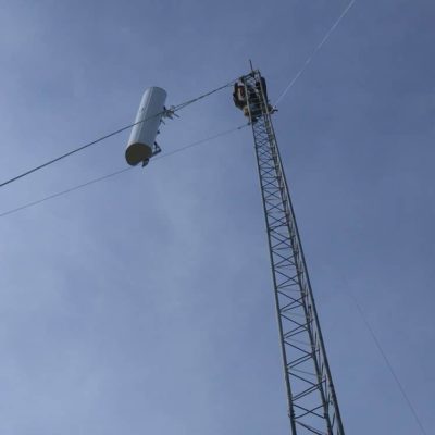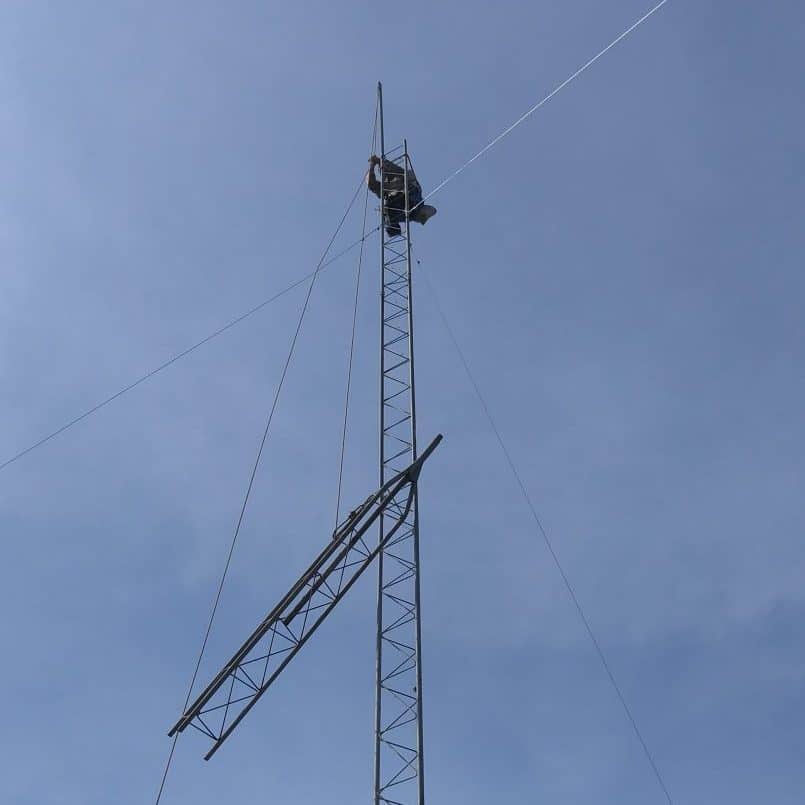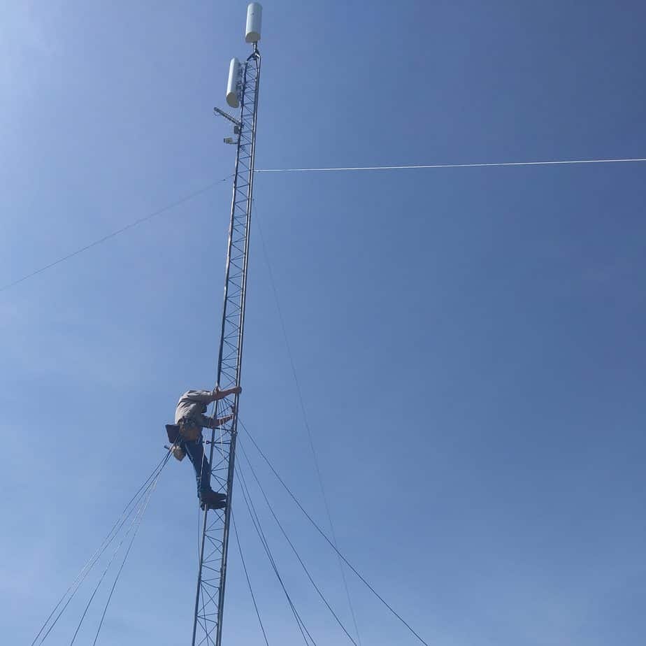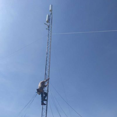 Finally, we mounted several antennas and radios at the top of the tower, to provide coverage to the east and north.